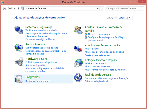 Com o Painel de Controle sendo exibido em Categorias, clique em Programas.