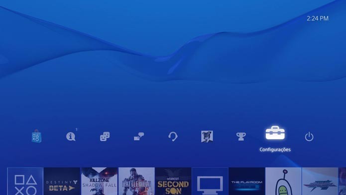 Passo 1: No menu principal do PlayStation 4, vá até configurações e pressione "X" para entrar.